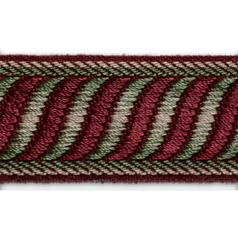1 1/2" wide woven ribbon with a handsome center ombr sage and raspberry architectural rope design with ivory and sage borders. LIMITED STOCK.
