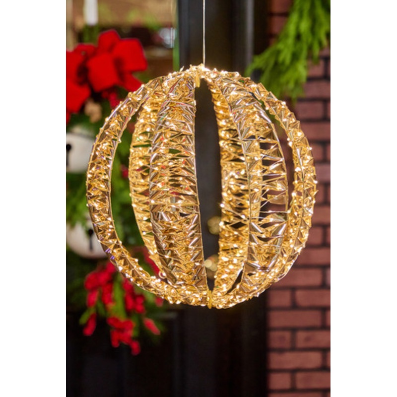 Suspended like a jewel in midair, this 1.3-foot ornament glows with 600 Warm White LEDs, each one twinkling like a captured star. Built to shine indoors or out, it transforms ceilings, porches, or branches into a scene of refined holiday magic. Lightweight yet commanding, it sways gently, catching the eye and heart alike. With an 8-hour on / 16-hour off timer, it appears each evening like clockwork, a luminous accent that never demands attention but always earns it. Elegant, radiant, and perfectly festive a hanging treasure for any space.