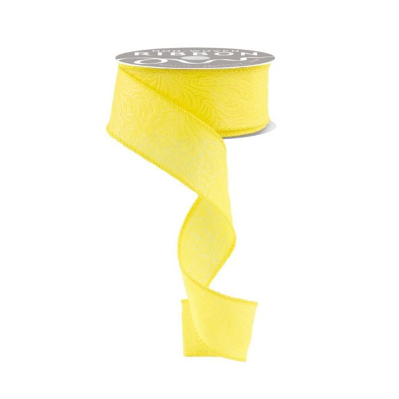 1.5 Embossed Flower/Leaves Ribbon: Yellow – 10yds