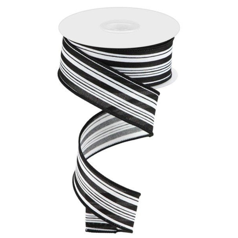 A 1.5" x 10yd roll of white and black vertical stripe linen ribbon. A great accent for making wreaths, bows, garland, or decorating or crafting in general! Great for a pop of black and white anytime.