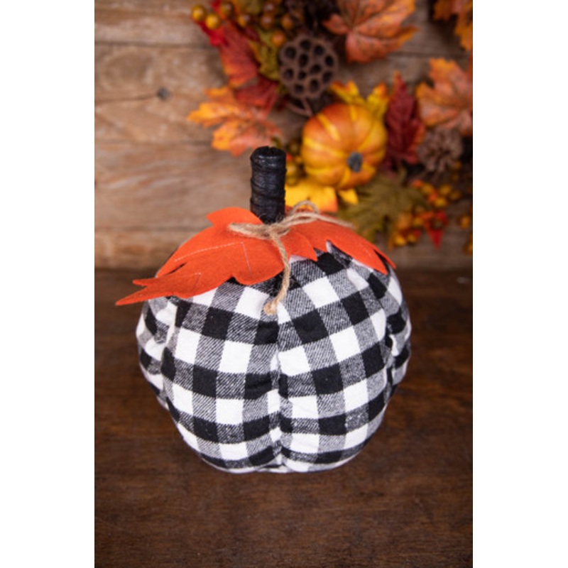 This adorable Large Plush Buffalo Check Pumpkin brings the best of black and white buffalo plaid to the pumpkin orange. A hand-sewn look with string and felt brings the coziest feeling to your fall decor.