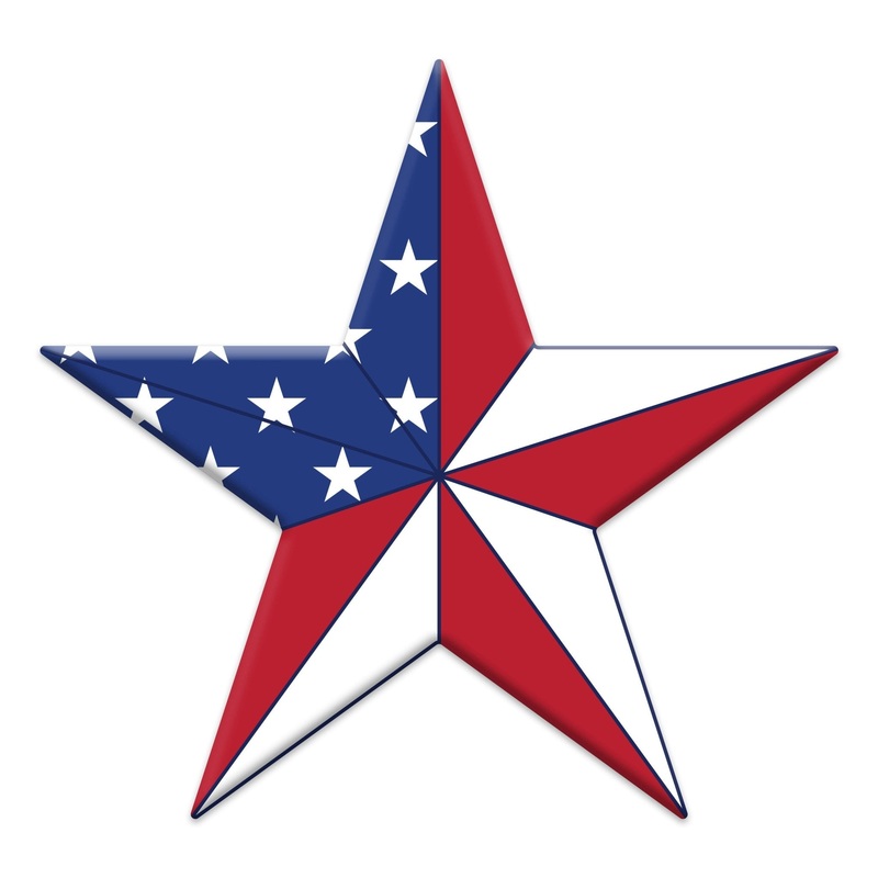 10″ Metal embossed star with an American flag look in red, white, and blue. Use as a centerpiece for a patriotic wreath or wall decor.