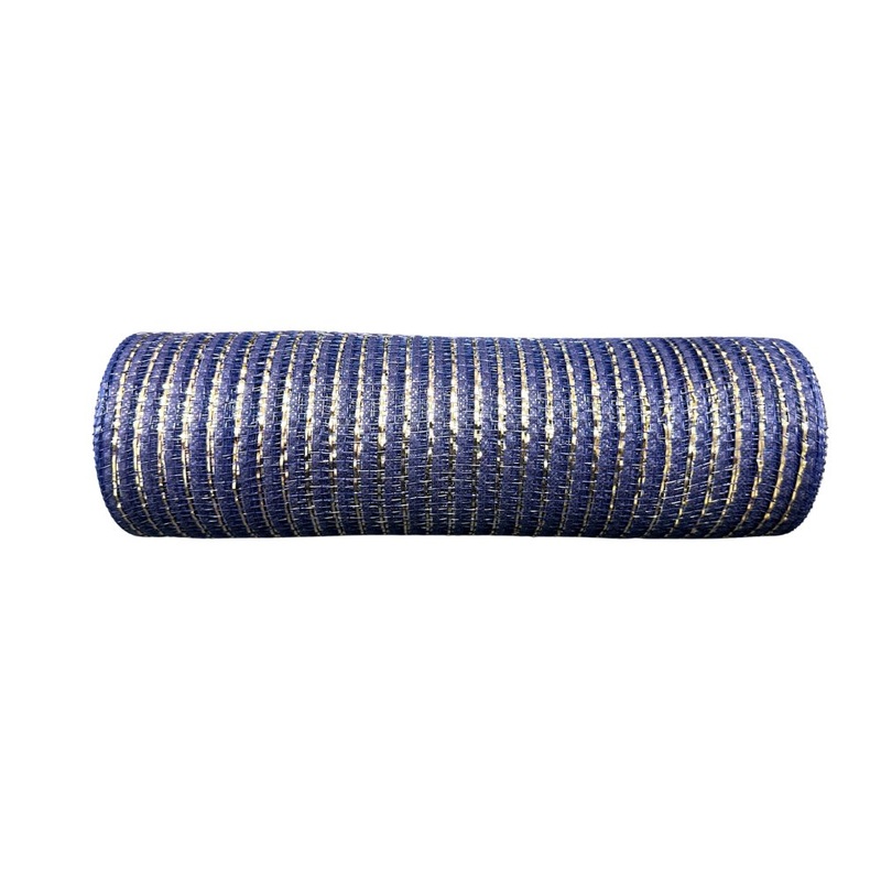 NEW 10″ Metallic Breeze Mesh in navy blue with champagne foil threads, 10yds.Use to make deco mesh wreaths or garland, decorate your treeor make bows!