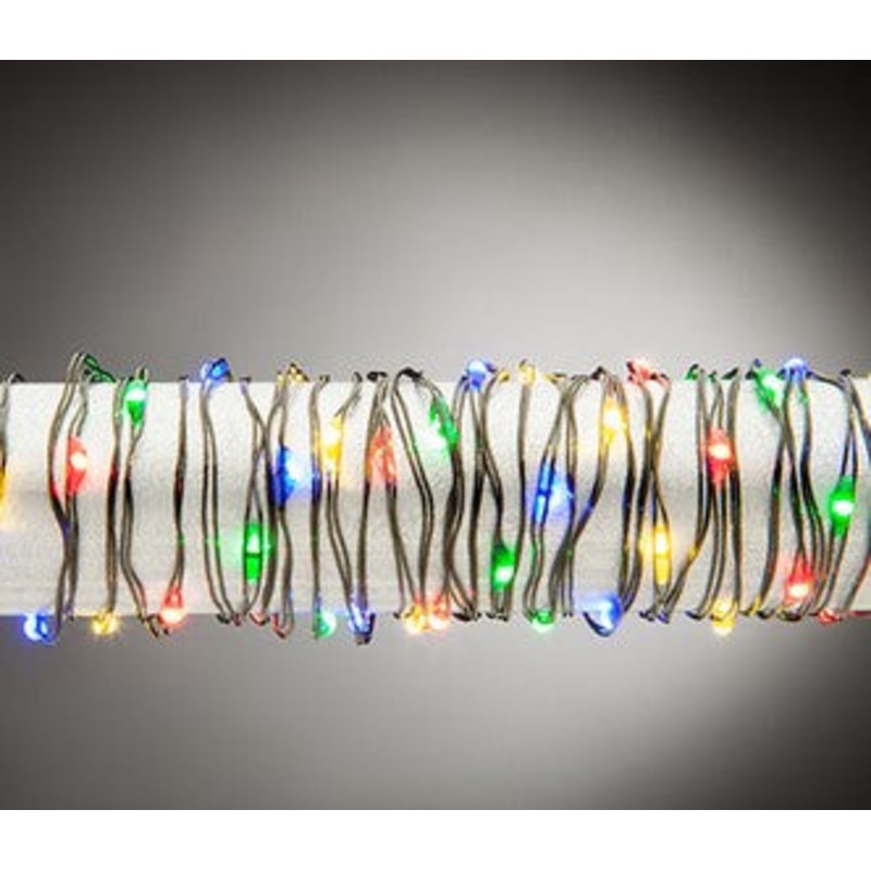 228049010ft Multi Color LED String Battery Operated - Green Wire10' Micro Multi-function LED Light String, 30 Lights, With Timer. Light String can go in water. Uses 3 AA Batteries with timer function (6 Hrs On, 18 Hrs Off), Batteries not included.