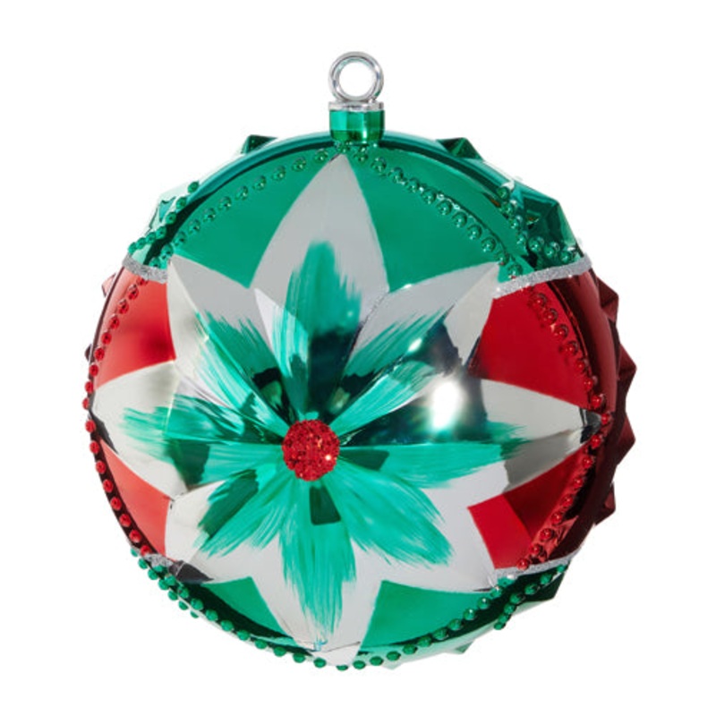 This festive 10" Star Ball Ornament in red and green is the perfect addition to your holiday decor. Its size makes it a standout piece, while the star shape adds a touch of whimsy. Spread some festive cheer and make a statement with this ornament!Made of P