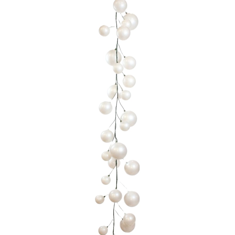 High Quality, Shatterproof Ball GarlandWhite as snow and slick as ice, this white candy apple ball garland will add a wintery touch to your holiday decor. The various ball sizes and white finish resemble the snowballs you build for a snowball fight! Incorp