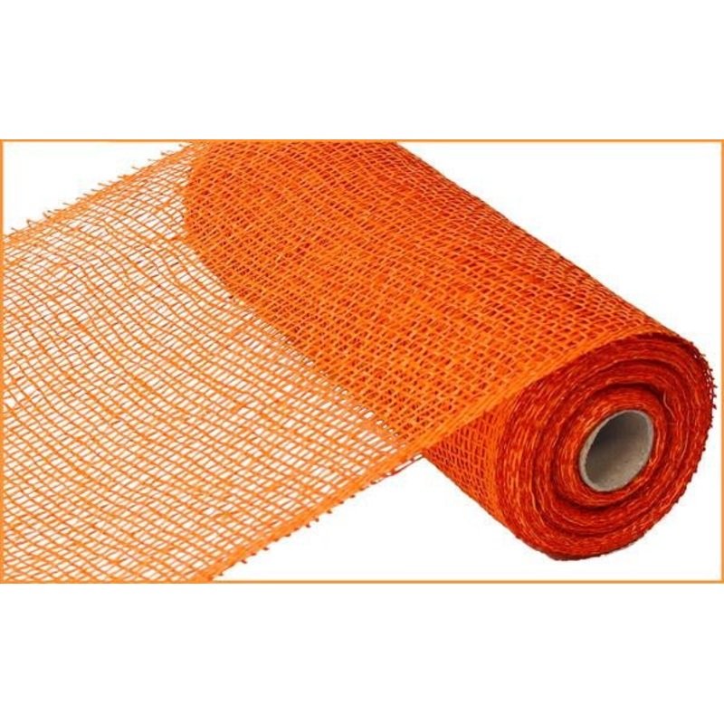 10"X10YD Orange Poly Burlap Mesh. Thick orange colored poly mesh that resembles burlap. Poly Burlap is very weather resistant and sturdy. Great wreath filler! Use to make wreaths, wrap gifts, make bows, etc.