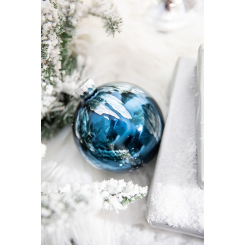 This deep navy Chrome Ball VP Ornament adds the right high contrast to your blue and White Christmas designs. Incorporate this element into your glam tree and garland designs for a truly unique luxe look.