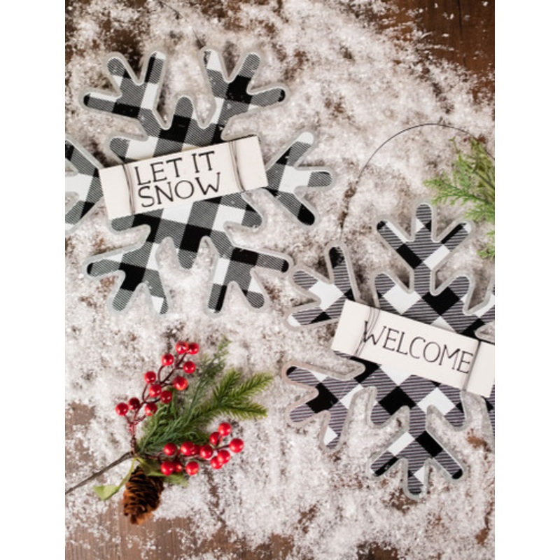 Feature stand-out ornaments that give your tree that designer impact like these plaid snowflakes. The on-trend black and white buffalo plaid adds neutral pattern that can mix into a colorful display as well as a monochromatic theme. Mix and match the two available varieties to add even more dimension.