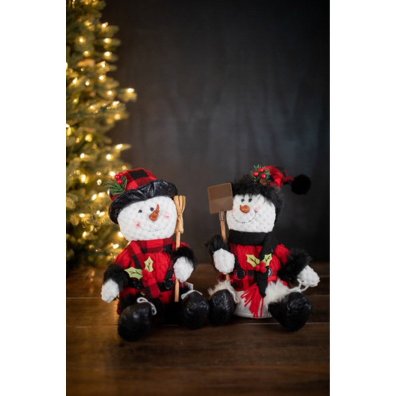 Timeless and charming, this piece will spread Christmas cheer as you display it on any shelf, table, or as a part of a farmhouse-styled winter display. This snowman's warm plaid coat and scarf have a pop of holly berries as his rosy cheeks and joyful grin