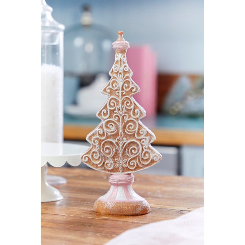 Get ready to add a sweet and festive touch to your holiday decorations with the 11" Resin Icing Gingerbread Tree! Featuring exquisite frosted icing filigree details and topped off with a delightful pink macaron, this enchanting piece is sure to be the star