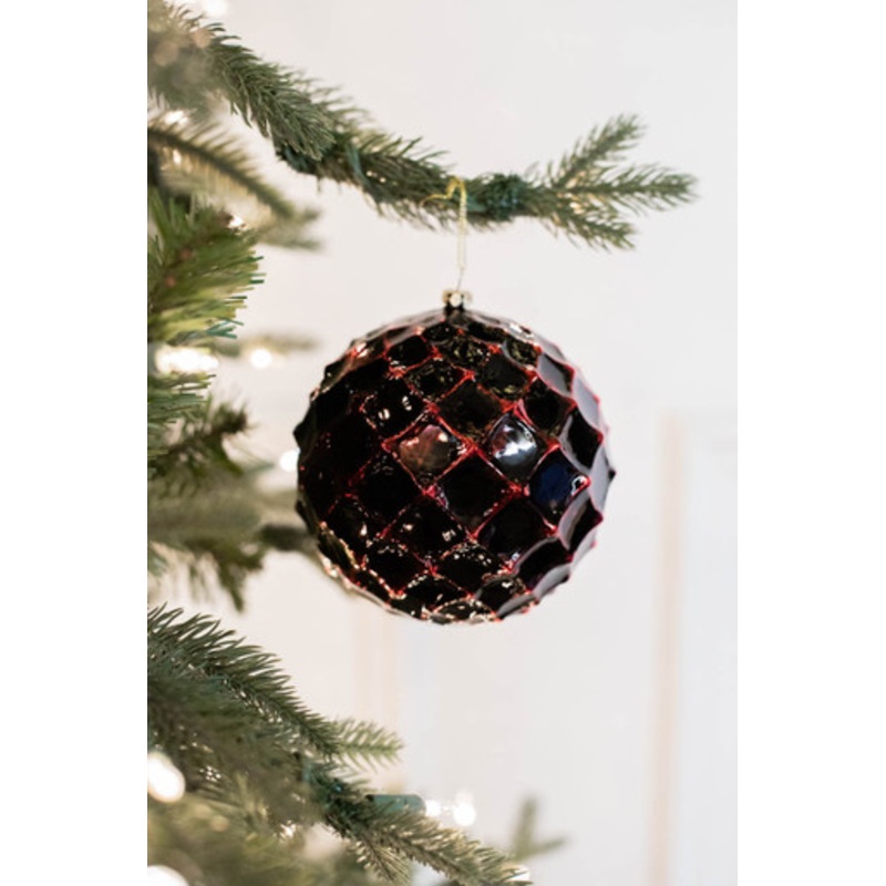 This vintage-inspired ornament brings drama and designer impact to any Christmas look. Scatter them throughout your tree for a rich and varied texture or display them on a tablescape or shelf. The deep wine red, accented by its unique shape, will bring visual interest for years to come.