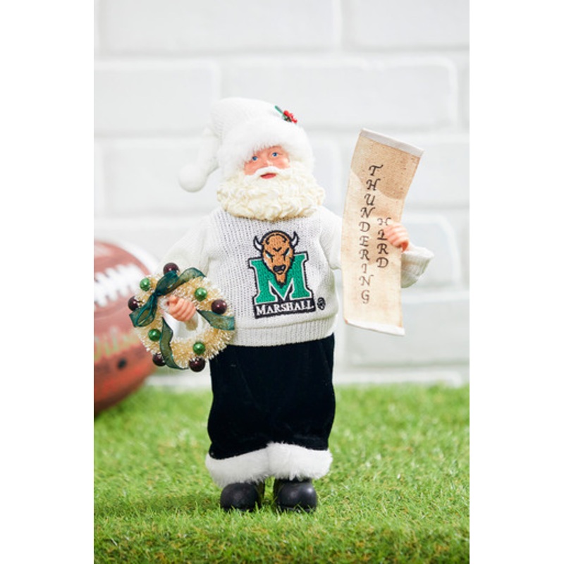 Get into the festive spirit with our 12" Collegiate Team Santa featuring Marshall University. Dressed in the vibrant green and white colors of the Thundering Herd, this jolly Santa brings the spirit of Marshall to your holiday decor. Whether displayed on a