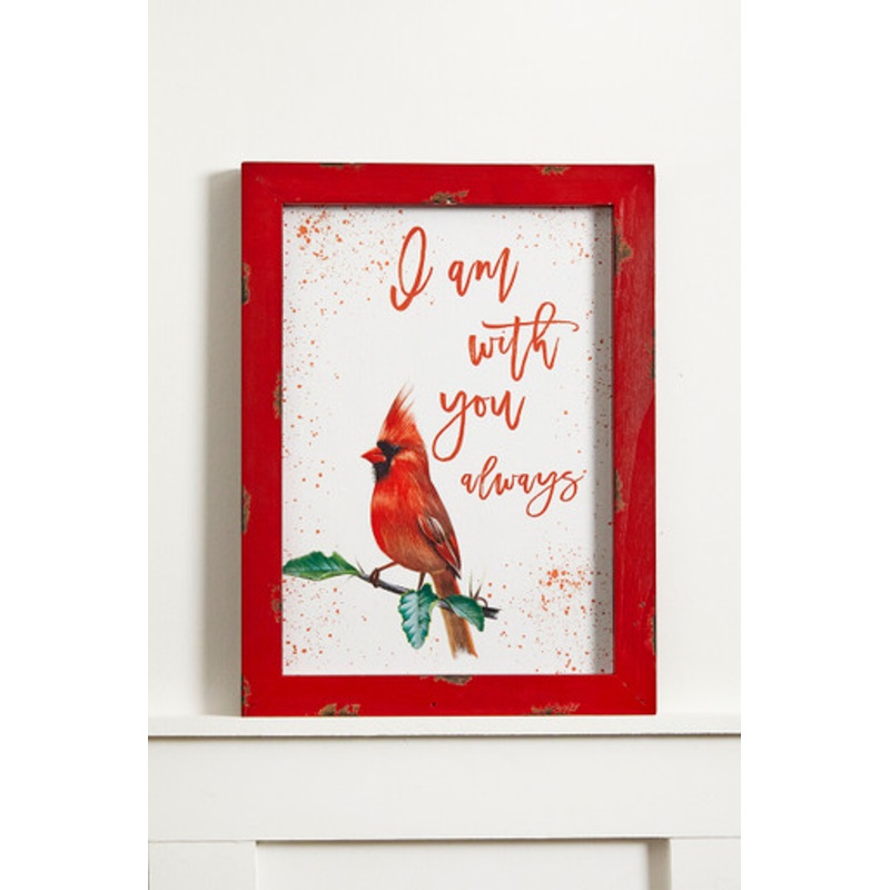 Introduce a piece of sentimental charm into your home with our 'With You Always' Cardinal Frame! This 12" x 16" weathered red frame features a perched cardinal image and touching "I am with you always" sentiment. Ideal for birthdays, anniversaries, or any