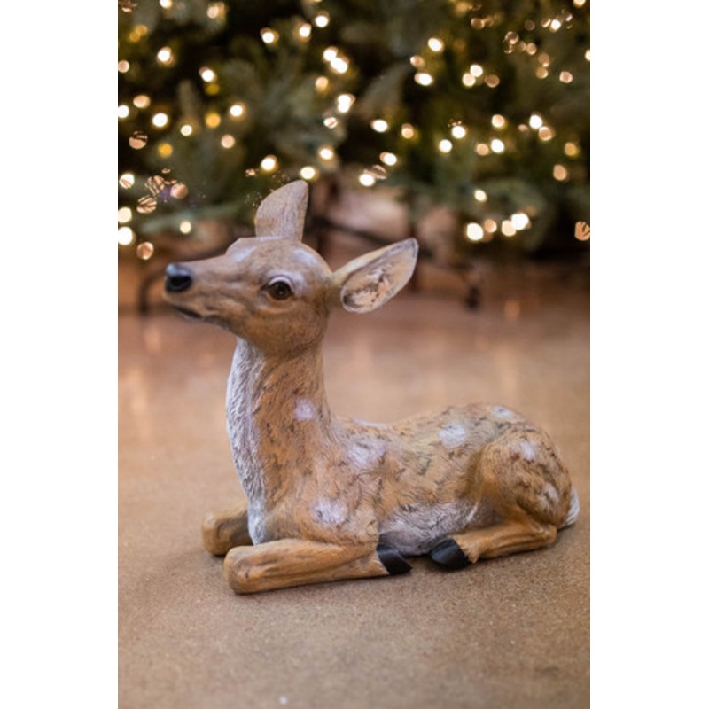 Enhance your holiday displays with this 13" laying fawn. Showcase the deer with an outdoor nativity scene or paired with other farm animals to add rustic flair. Our resin pieces are rated for both indoor or outdoor use, with a UV resistant paint and sturdy