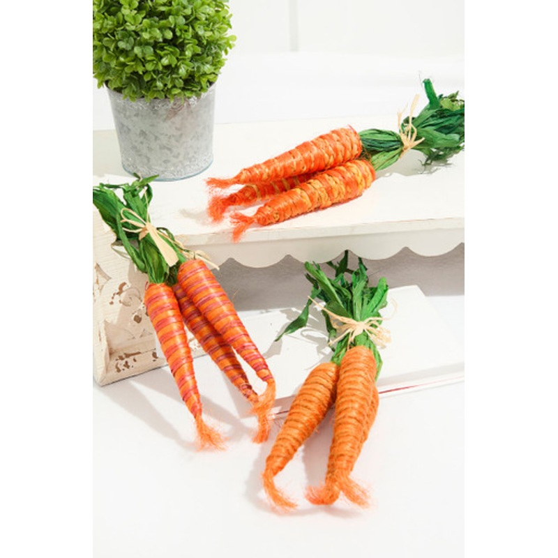 Add a charming, natural touch to your Easter decor with the 13"H Handcrafted Grass Easter Carrot Bundle! This beautifully crafted set features three carrots made of textured grass, tied together for a rustic and festive look. Perfect for displaying in bask
