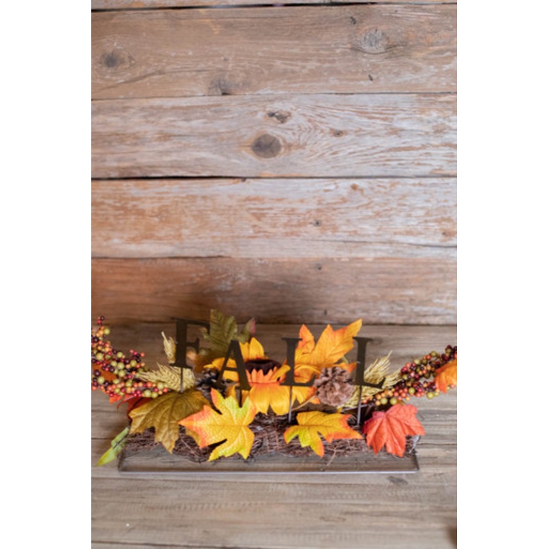 Spark interest on your dining table with this one-and-done Autumn-inspired piece. The black “Fall” letters are nestled into a beautiful array of sun-kissed yellow leaves and vibrant berries on a base of rustic brush. This piece serves as a warm and welcoming focal point wherever it is displayed.