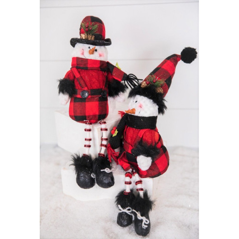 The winsome nature of our shelf sitter snowman will bring another layer of warmth and joy to any shelf or winter display scene. Featured in our Farmhouse Collection, the on-trend buffalo check accessories are the star of the show, accentuated with his uniq