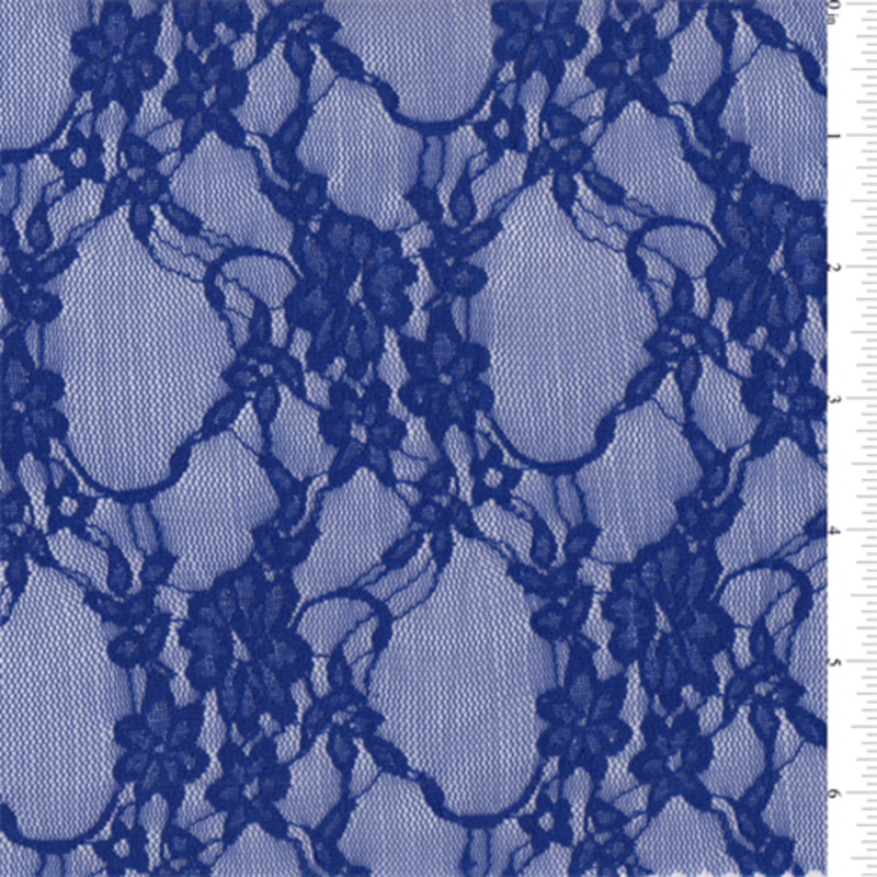 Royal Blue floral stretch lace fabric. This light weight sheer lace fabric has ample 4 way stretch and recovery.- 95% Nylon 5% Lycra- Width: 56"15 YARD BOLT