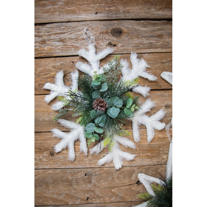 Immerse yourself in a winter wonderland with a unique 16" Snowflake Metal Ornament. This exquisite piece, with plush details and greenery center, possesses the charm to turn your home into a festive haven. Discover how our ornament breathes life into your