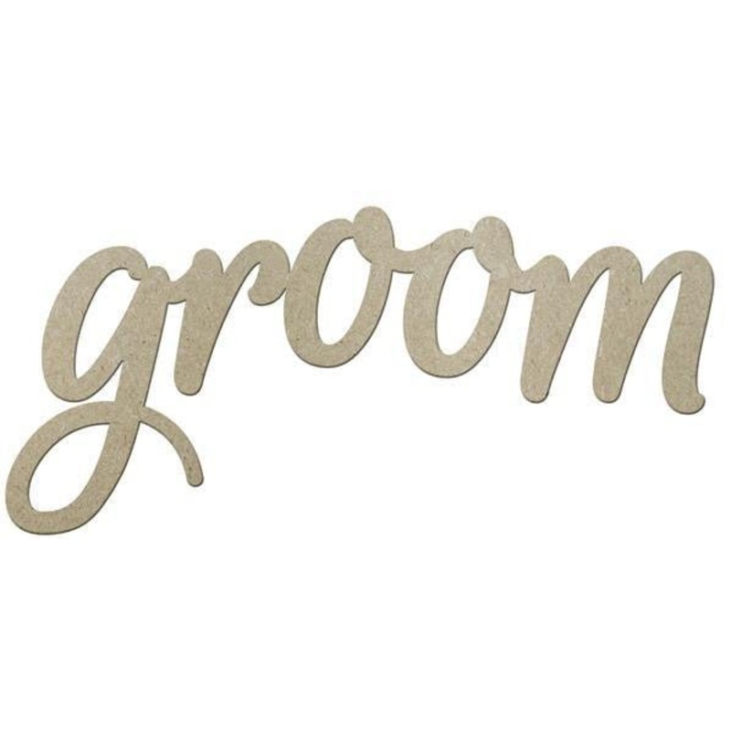 17.25" x 8" MDF cut out of the word "Groom", unfinished. Great for wedding decor! Paint it any color/design, and combine with the unfinished "bride" cutout, and hang for wedding decor, or make His and Her wreaths!