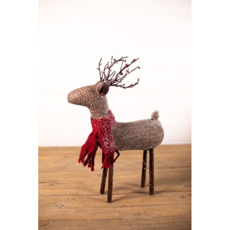 This cozy 18" hazelnut brown reindeer, lightly iced with frost and decorated with a festive cherry-red scarf, will bring some holiday cheer to your home this season. Display in a tree to add fullness and dimension, or display in a holiday scene to add a wa