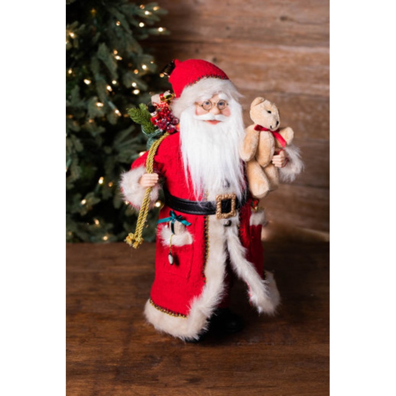 Endearing and one-of-a-kind, this vintage-inspired Santa is a must-have for your seasonal decor collection. Its cozy details welcome Christmas spirit as the chubby-cheeked character holds a Christmas bear and classic bag full of goodies.