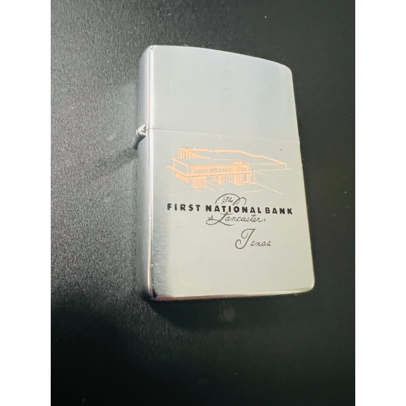 1965 Vintage Zippo Lighter - First National Bank - Unfired Two color nice etch and paint graphic out of Lancaster, Texas. The lighter in new unfired, no box. Very clean and all correct. Looks like it was handled outside of the box one time with very very l
