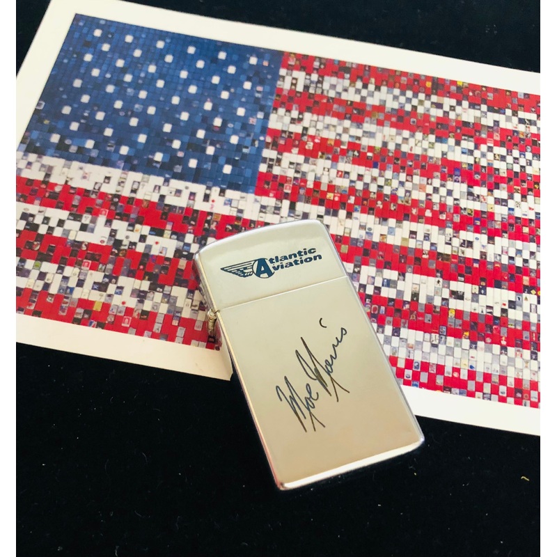 1968 Vintage Atlantic Aviation Zippo Slim Lighter The lighter has been used regularly, but is in overall good condition. There is pocket wear from use, but no significant scratches or dings. The lighter has a signature that appears to be "Moe Morris". It's