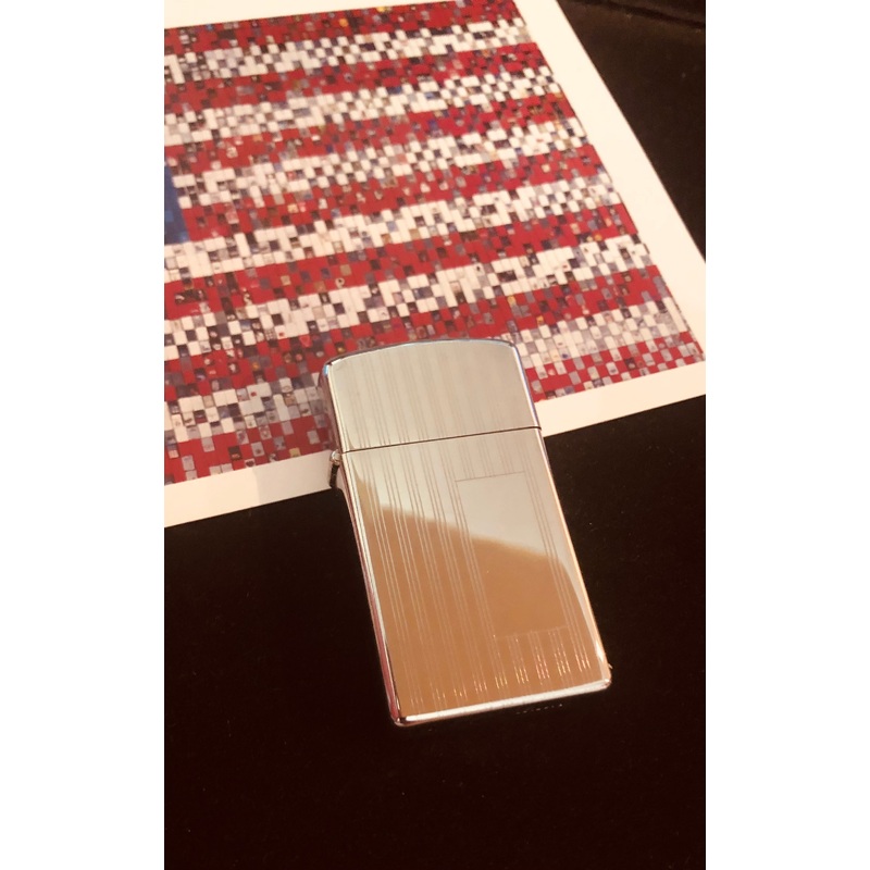 1977Year Vintage Slim Unfired -Engine Turned This lighter isan unfired engine turned lighter that has been handled outside of the box. It has some very light scratches that can only been seen from certain angles. Hinge is tight. Insert correct. Inside of t