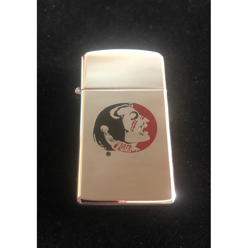 1981 Florida State Seminoles Slim Zippo Lighter! A university with great history. This logo or variations of it has been in place for many years. The lighter is a Zippo slim has been gently used. Light wear and small scratch on back. Front is really clear