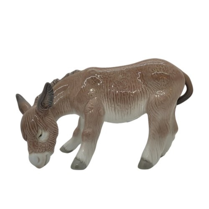 Enameled porcelain Donkey figure, Lladr, 19th century. XX SpainFriendly porcelain from the prestigious Spanish manufacture Lladr, representing a long-haired donkey. His posture is serene and calm as he is eating, his mouth is half open and his ears are ext