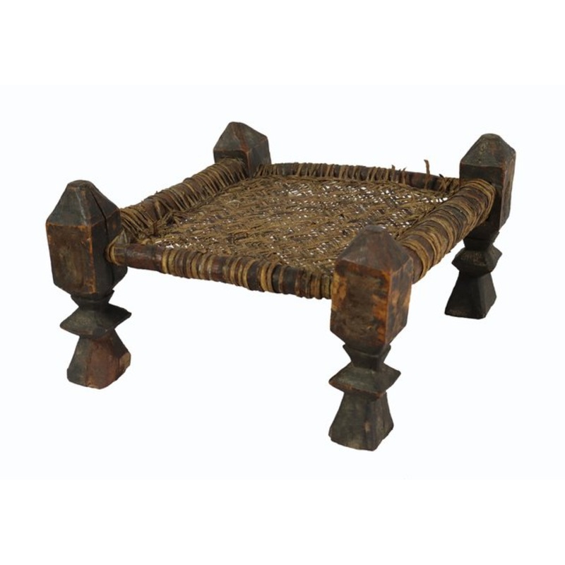 Very rarely and unique 19th century antiquity chair low stool from Nuristan Afghanistan / Swat-valley Pakistan.Object: low stoolMaterial/technique: Wood, hide / hand-craftedOrigin/Period: Afghanistan, Nuristan / 19 th C.Width: 44 cmHeight: 20 cmDeep : 44 c