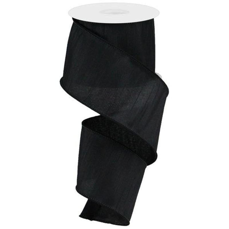 A 2.5" x 10yd roll of solid black, wired faux dupioni ribbon. A great accent for making wreaths, bows, garland, or decorating or crafting in general! 100% polyester. Faux dupioni is a high quality ribbon resembling rough silk fabric with a slightly lustrou