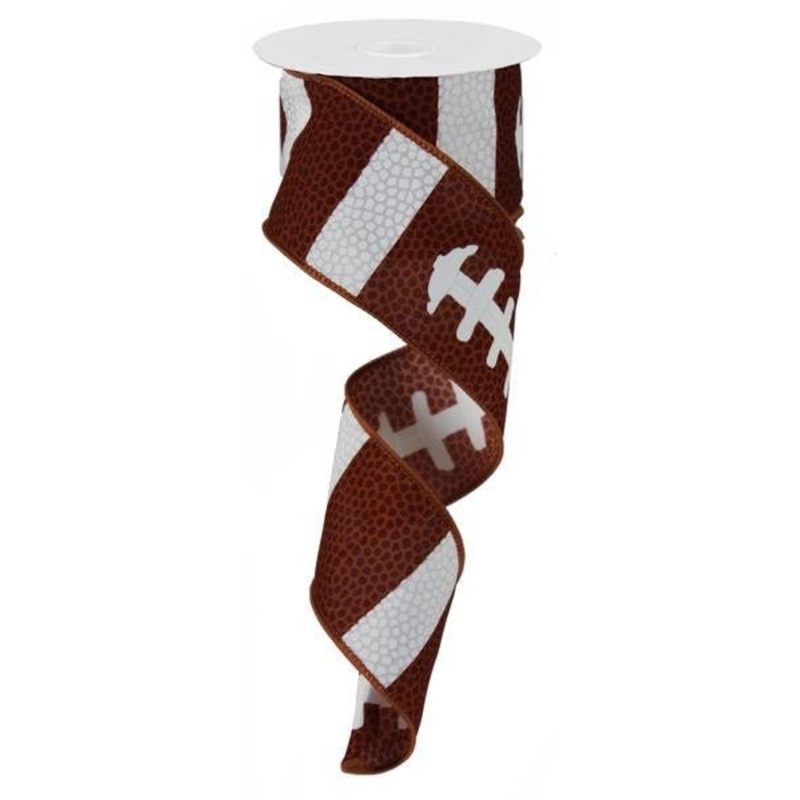 A 2.5 inch wide x 10yd roll of football lace ribbon with brown and white colors. Add to wreaths, garland, use to make bows, great for decorating and crafting! Wired edges make this ribbon perfect for shaping into bows.