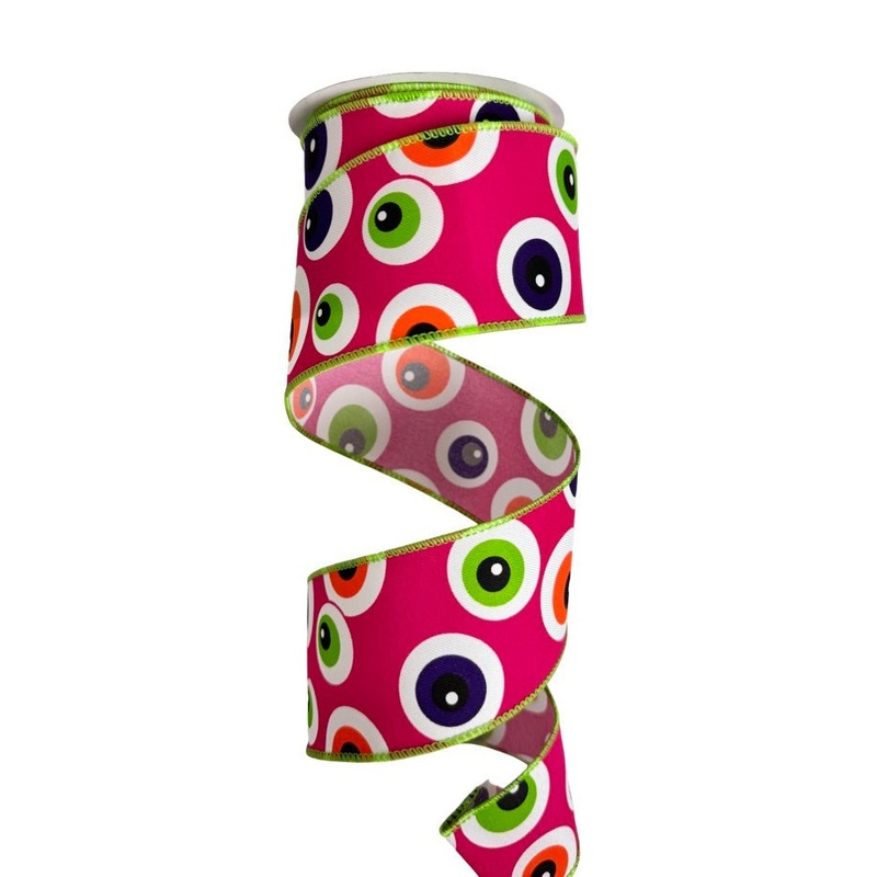 2.5 Halloween Eyeball Ribbon: Hot Pink – 10yds