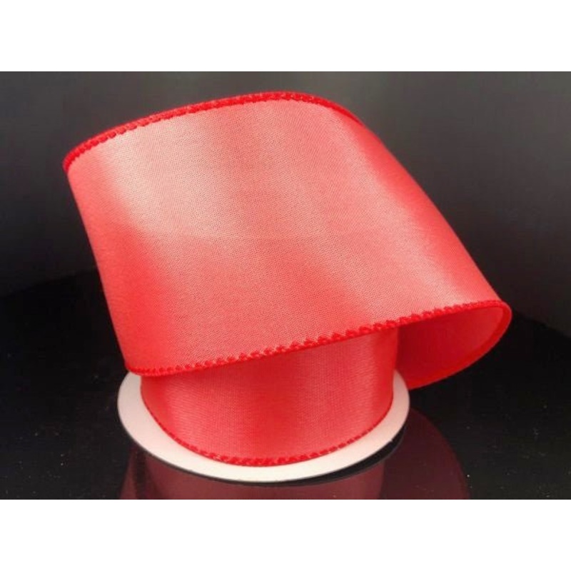 A roll of solid melon or coral colored satin ribbon with wired overlay edge. 2.5″ x 10YDs. Great for making bows!