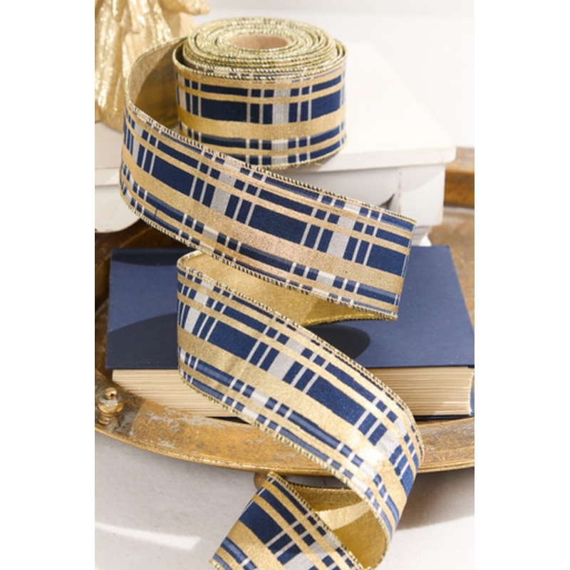 2.5 x 10 Yard Blue and Gold Plaid Ribbon