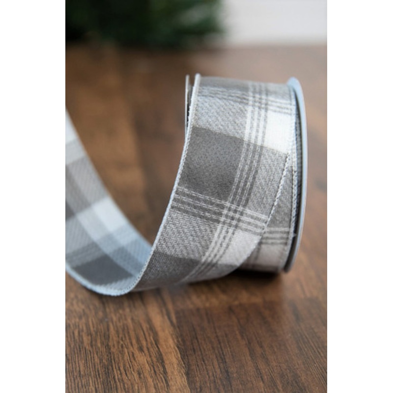 2.5 x 10 Yard Grey Flannel Plaid Wired Ribbon