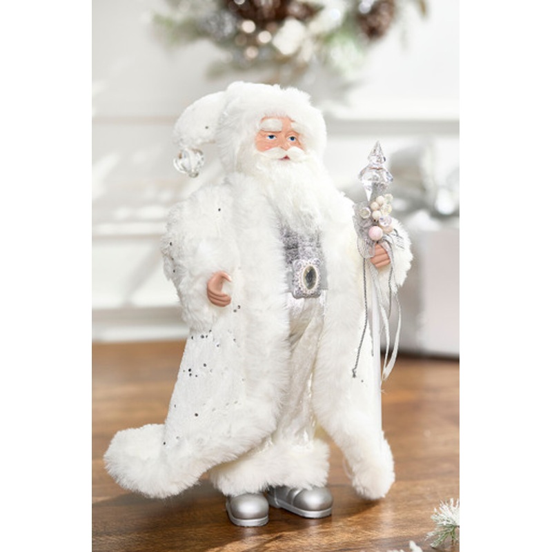 Discover the beauty of our 20" Fabric Winter Santa with Jewel Staff. This magical and whimsical creation boasts a white and silver design, making it the perfect addition to your holiday decor. Don't miss the chance to add this captivating Santa to you Chri