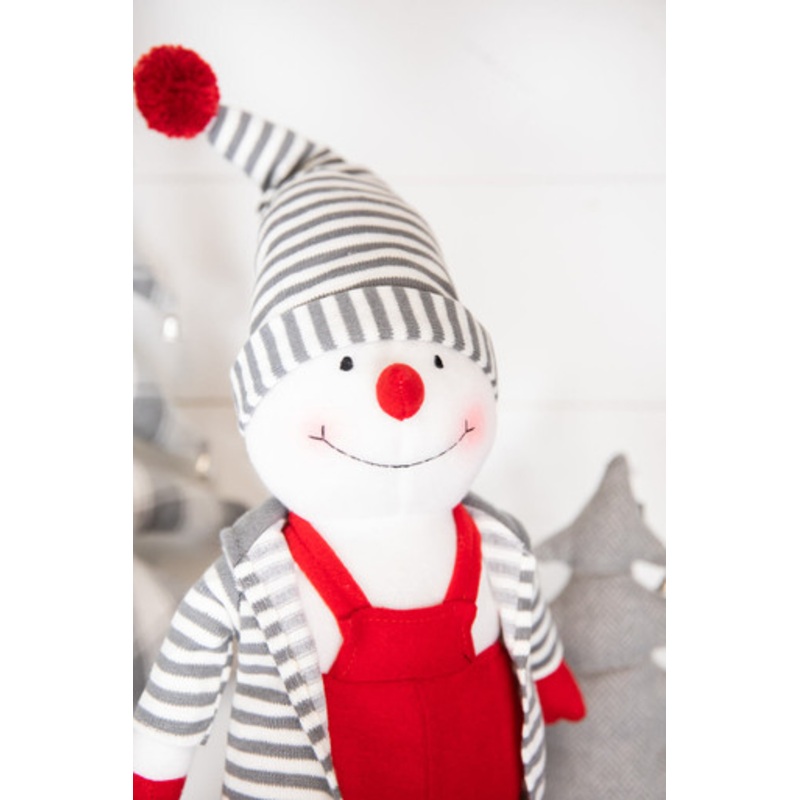Add a bit of winter magic to your home this holiday season by bringing in our charming 20" standing snowman figure. This adorable snowman is dressed in a pair of red overalls and a grey and white striped jacket and hat, making it the perfect addition to yo