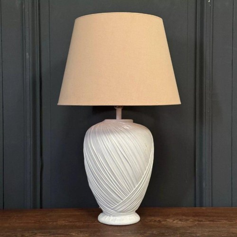 “Leather Lamp 20th Century 1980 By Emilio Robba” This lamp is covered in white patina leather. The lampshade shown in the photos is not for sale. The electricity is old, so it needs to be reviewed for safety reasons. We report traces of wear due to use, this lamp base remains however in an acceptable general condition, but vintage. Our photos allow you to appreciate the quality of the object. Dimensions: Height: 49 cm Diameter: 27 cm Base diameter: 16.5 cm