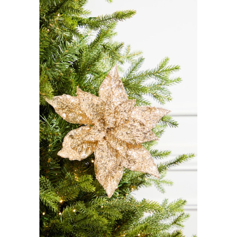 Add some serious sparkle to your holiday decor with our 21" Beaded Champagne Gold Poinsettia Stems! With a touch of beaded glamour and a whole lot of enthusiastic charm, these festive beauties are sure to be the center of attention. Don't miss out on the c
