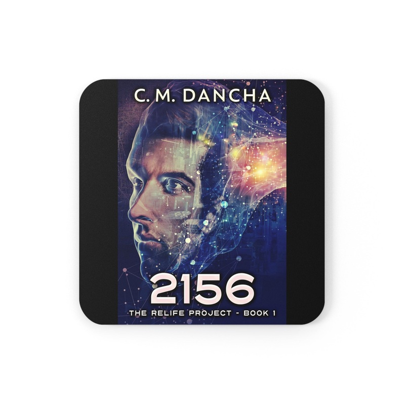 These coasters are made with a high-gloss top and feature a cork back to prevent sliding, and each order comes with a set of four coasters. The cover art in these coasters is from C.M. Dancha’s book, 2156.