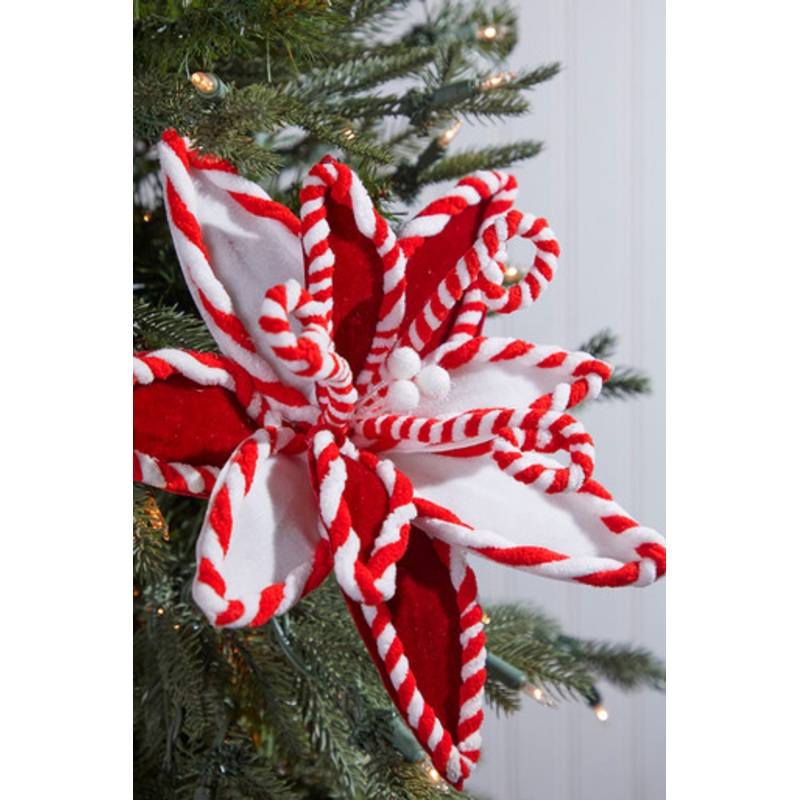 Breathe life into your holiday decor with our "22" Red & White Peppermint Poinsettia Stem. As part of our exclusive Christmas Peppermint Collection, this vibrant piece captures the unique magic of the season. Youll be charmed by its striking hues and inspi