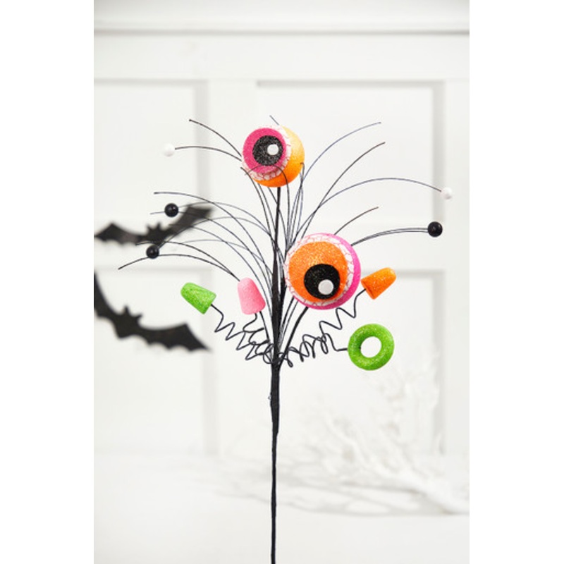 Create a spooky and whimsical Halloween display with our 24″ Eyeballs Gumdrop Spray. Featuring colorful gumdrop shapes adorned with eerie eyeballs, this unique spray is perfect for adding a playful and slightly creepy element to your decor. Ideal for wreaths, floral arrangements, or a Halloween tree, it brings a touch of Halloween fun to any setting. Enhance your festive decor with this eye-catching Eyeballs Gumdrop Spray!