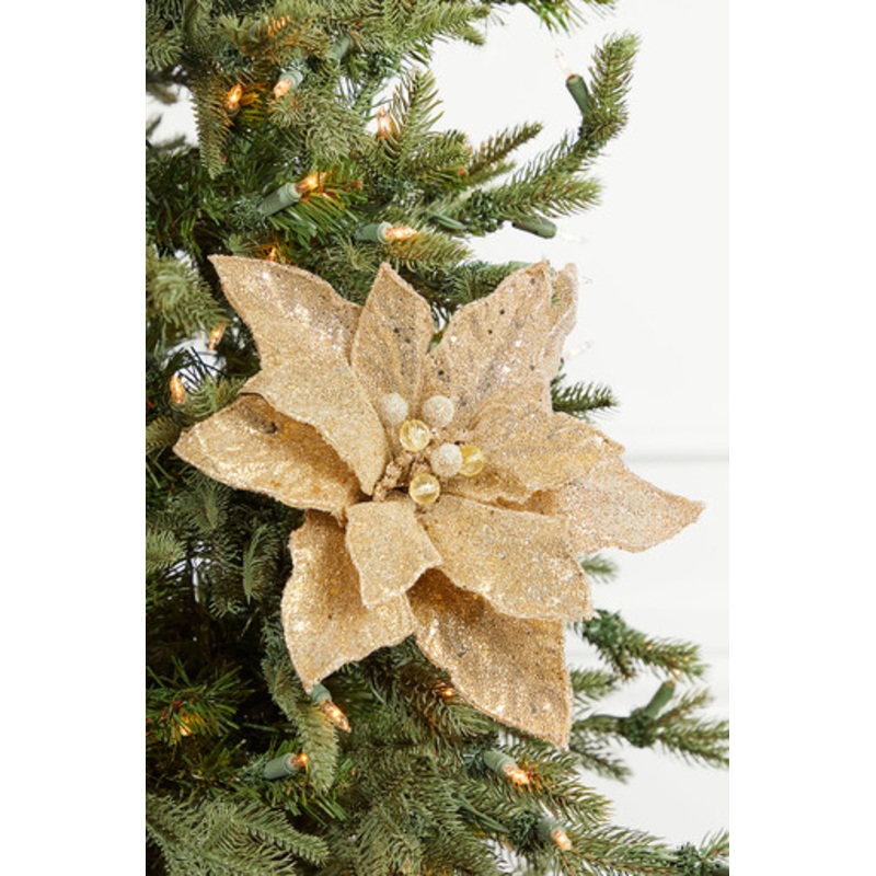 Elevate your holiday decor with our exquisite 24" Champagne Micro Beaded Sequins Poinsettia Stem! This stunning stem combines the timeless beauty of poinsettias with a touch of sparkle and elegance through micro beaded sequins. Measuring 24 inches in heigh