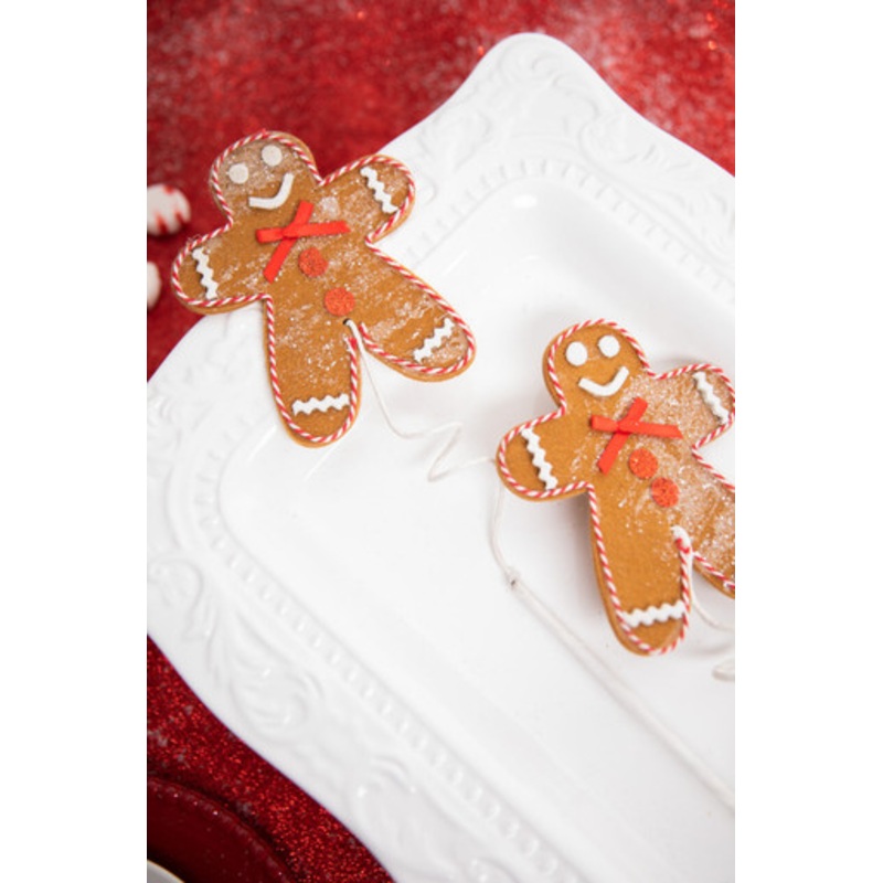 So cute, you could almost eat them! This gingerbread men spray is an authentic nod to our favorite holiday cookie, complete with red and white piping and sparkling red buttons. Perfect for accenting a red and white kitchen Christmas tree or another Peppermint and Gingerbread look!