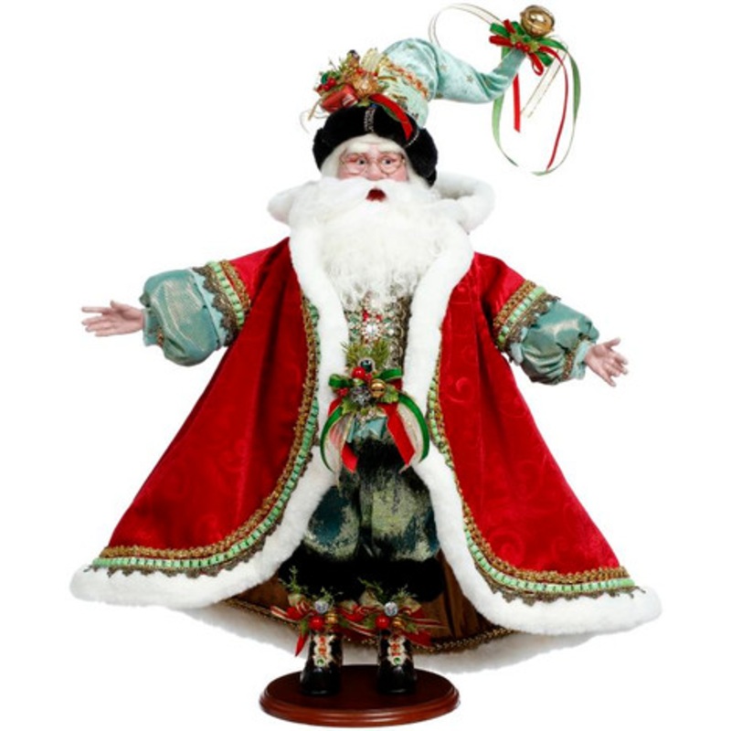 This 25-inch Yuletide Santa exudes holiday cheer with his finely detailed attire, twinkling eyes, and joyful expression. Crafted by Mark Roberts, every featurefrom his flowing coat to his festive accessoriesreflects the charm and warmth of a storybook Christmas. Perfect for mantels, tabletops, or as the centerpiece of a holiday vignette, he brings playful elegance and festive magic to your seasonal decor. Invite him into your home and let his spirited presence delight family and guests alike.