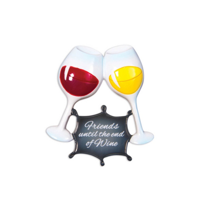 If youre looking for a special way to celebrate the special bond you and your best friend share, our customizable ornament is the perfect way to commemorate your friendship. Our ornament features two wine glasses, representing the joy and laughter you share with your best friend. This ornament is the perfect gift for the wine enthusiast in your life, and its a reminder that you two will be friends until the end of wine. Celebrate your friendship with this unique and one-of-a-kind ornament. Customize this ornament at home with a name or a message to make it extra special.***Does not include permanent marker for personalizing the ornament.